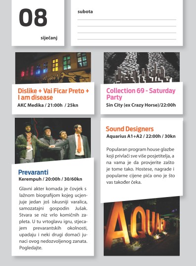 A što se siječnja tiče, mjesec obiluje predstavama, manjim koncertima, komornom glazbom i klupskim programima. Ogromnih događanja nema, no možda je siječanj baš ono najbolje vrijeme da se odmorimo i skupimo snagu za nove pobjede.